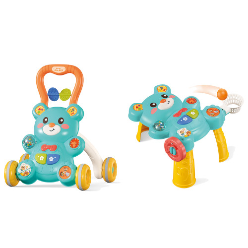 Caminador para primeros pasos y mesa didáctica extraíble.