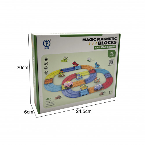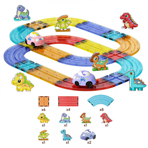 Pista magnética con dinosaurios y autitos. 26 piezas