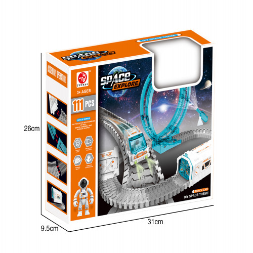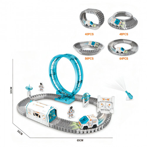 Pista espacial 360° Con auto espacial y vagón, astronauta, proyector, luces y accesorios.